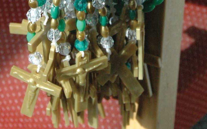 Tom and Ronda Scrivner of El Paso, Texas, have a unique retirement hobby, one that recently reached Alaska. Born out of grief from the loss of a daughter Tommy Lynn, who died, they began making beaded rosaries, primarily in college colors, and sending them to an ever-expanding circle of schools.