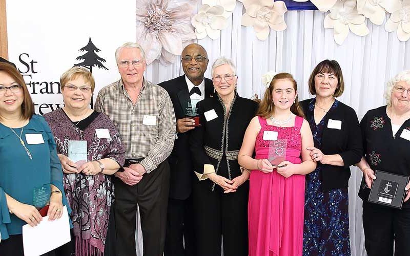 The banquet honors individuals, couples and groups who are nominated by their fellow Catholics as exemplifying the spirit of Saint Francis, a spirit of humble service and stewardship. A panel of volunteers evaluates the nominations without knowing names or parishes. It’s never an easy task to choose the finalists, said Evans-Dineen, who called the 33 nominees wonderful and said “we wish we could have had 33 recipients.”