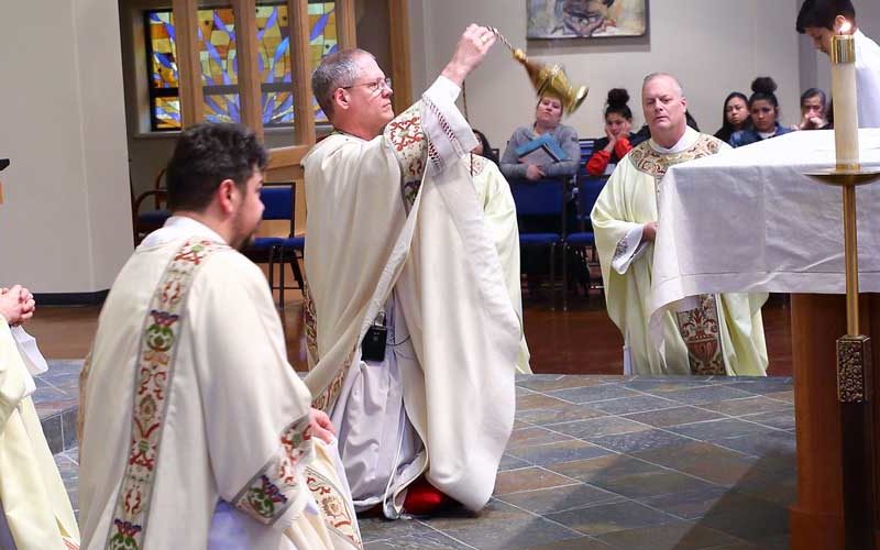 The priesthood of the ordained was especially highlighted in the liturgy, where dozens of priests and deacons throughout the 138,000-square-mile archdiocese gathered to renew their vows and commit themselves to the service of the Gospel.