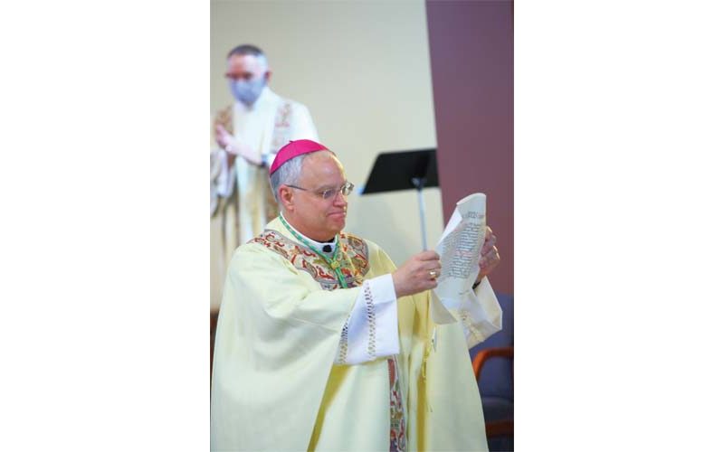 By Dominique JohnsonThe North Star Catholic With three knocks on the front door of Our Lady of Guadalupe Cathedral, Archbishop Andrew Bellisario, C.M., was welcomed as the first archbishop of the Archdiocese of Anchorage-Juneau. The liturgy commenced with the new archdiocese’s inauguration, with the reading of the apostolic mandate from Pope Francis, by Archbishop Christophe…