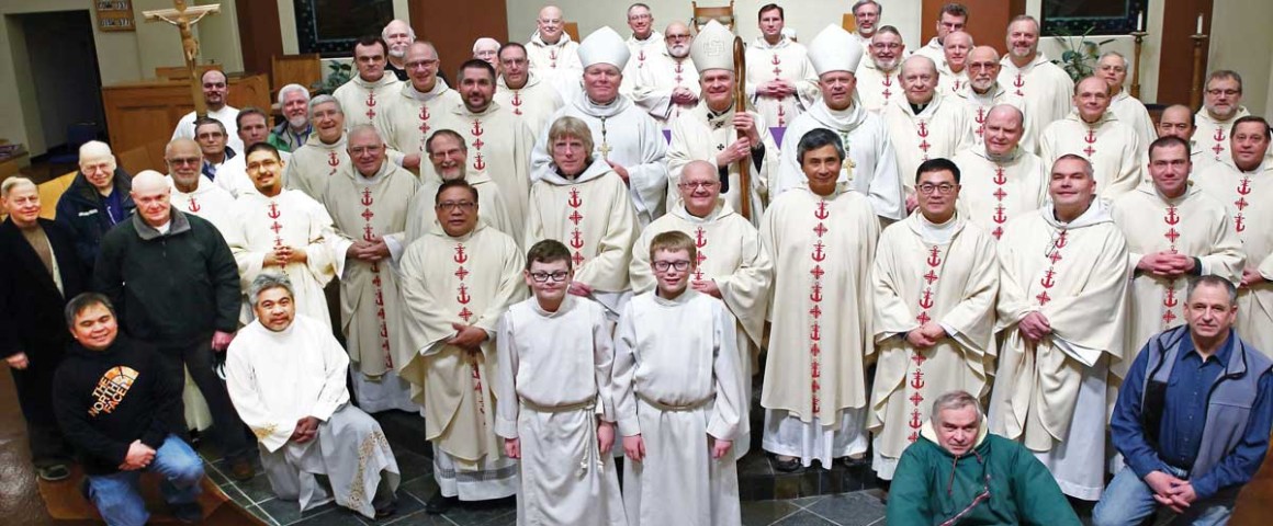 On Feb. 24 the priests gathered for Mass at Our Lady of Guadalupe Co-Cathedral in Anchorage with Anchorage Archbishop Roger Schwietz, Juneau Bishop Edward Burns and Fairbanks Bishop Chad Zielinski.