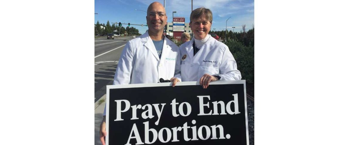Planned Parenthood employees had seen many pro-life advocates outside their abortion clinic on Lake Otis Parkway in Anchorage. But in late August of 2015, two new figures appeared — a man and woman in unmistakably white medical coats, quietly praying the rosary with a larger group.