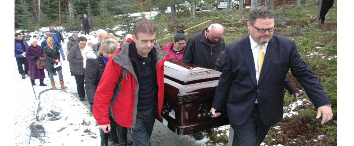 On Jan. 23 Anchorage Archbishop Roger Schwietz and Bishop Michael Warfel were on hand for the final Mass and burial. Also there were Father Tom Lilly, Father Steven Moore, Father Dick Tero and Deacon Felix Maguire. Another 70 mourners filled the log-cabin styled mission.