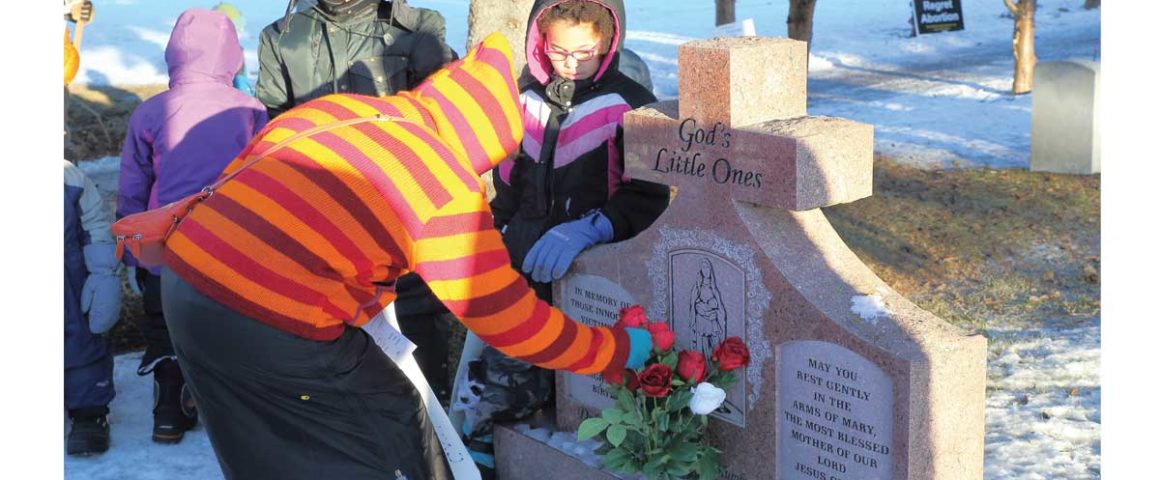 Dozens of participants gathered Jan. 20 at Anchorage Memorial Park Cemetery to mark the 45th year of the Supreme Court rulings that legalized abortion across the nation.