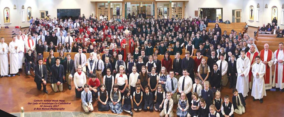A sea of plaid jumpers, button-down shirts, suit coats and neckties, worn by more than 400 school children filled Our Lady of Guadalupe Co-Cathedral on Jan. 30. for the annual Catholic Schools Week Mass celebrated by Anchorage Archbishop Paul Etienne.