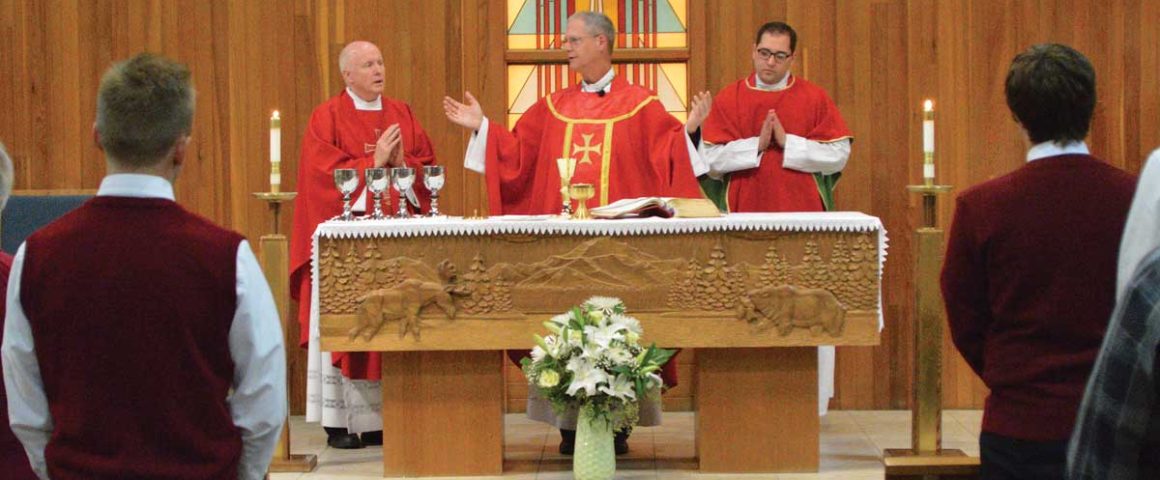 Young men and women in pressed slacks or skirts, button-down shirts and ties filed into St. Benedict Church in Anchorage on the morning of Aug. 21. Parents, faculty, staff and others joined the young people and Anchorage Archbishop Paul Etienne to begin the first day of the 2017-2018 school year at Lumen Christi High School with Mass.