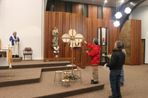 Sr. Jean Rhoads, D.C., director of Native Ministry, organized the Mass, while Kateri Circle members assisted with drumming, signing, and taking part in the liturgy.