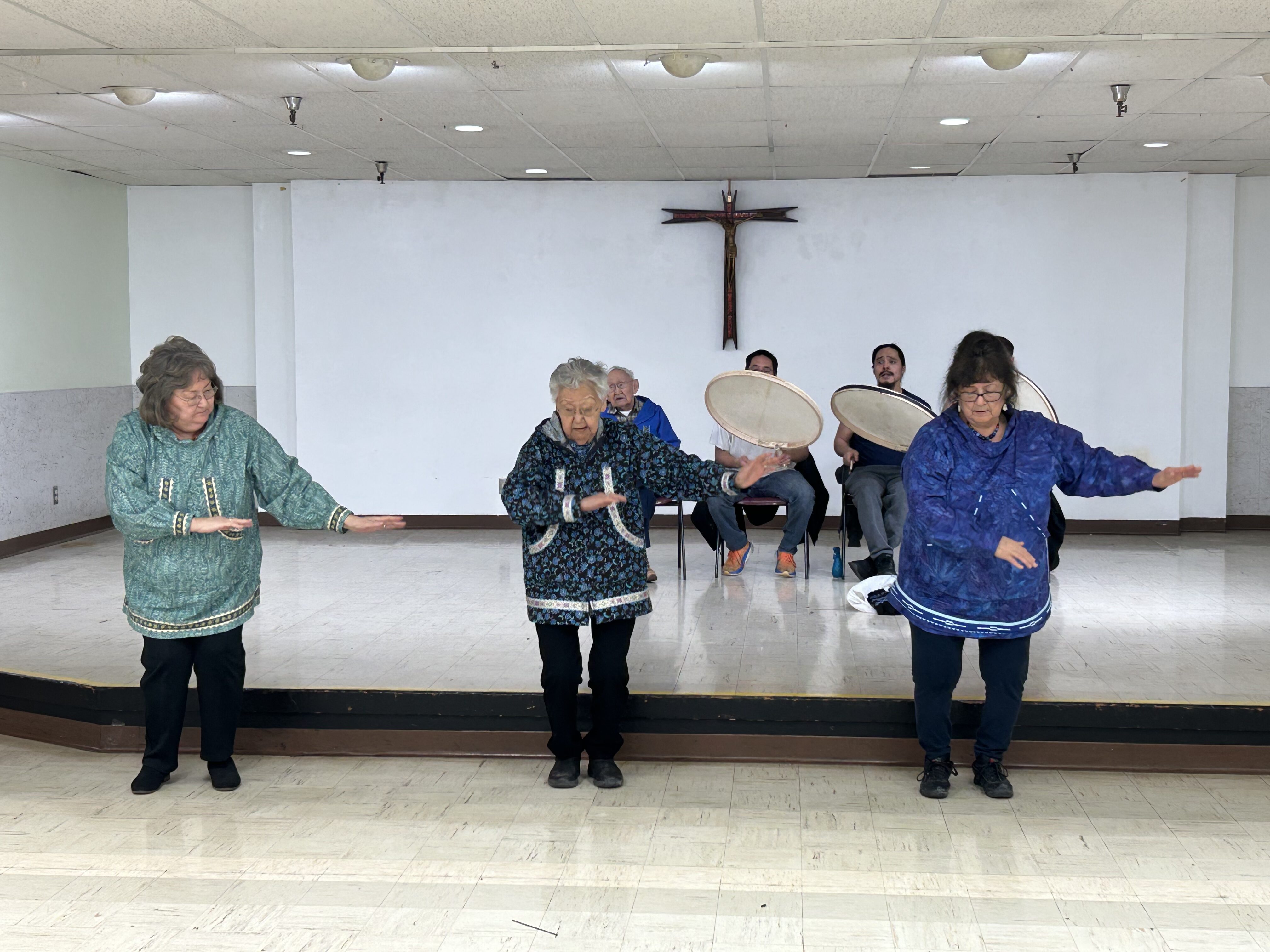 The congregation prayed the “Our Father” in Yup’ik as Gemma Gaudio and the grandchildren of Theresa and Donald Mike signed with their tegumiaks, dance fans made of feathers, fur, and other materials.