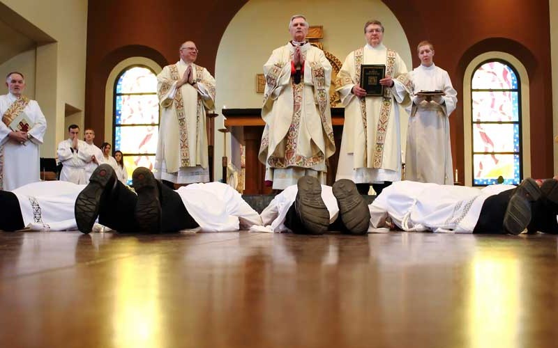 It’s no secret that the vast, sparsely populated expanse of Alaska suffers from a grave shortage of Catholic clergy. On May 1 at Our Lady of Guadalupe Co-Cathedral in Anchorage that burden was lessened just a bit when six Alaskan men, dressed in white albs, were called from their seats among family and friends to be ordained permanent deacons for the Archdiocese of Anchorage.