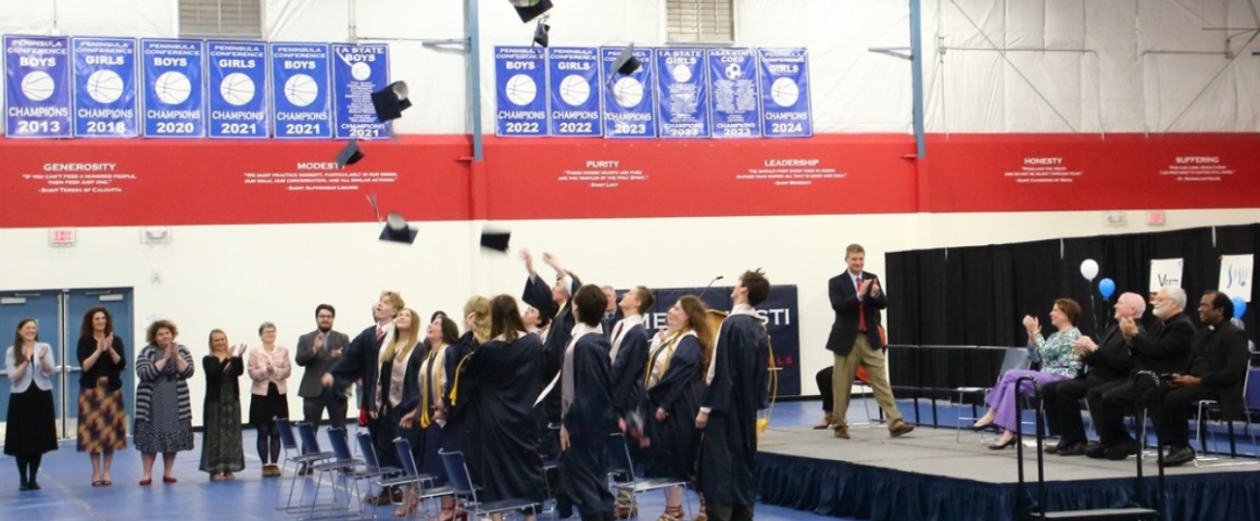 Lumen Christi Catholic High School celebrated commencement at the school gymnasium in Anchorage on May 9, a celebration for the 11 graduates of the class of 2024 as the 26th class to graduate from Lumen.