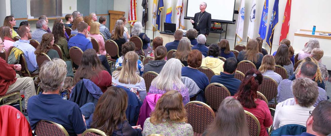 Approximately 70 teachers, staff, and administrators attended from the four archdiocesan schools: Lumen Christi High School and St. Elizabeth Ann Seton Elementary School of Anchorage, Our Lady of the Valley School of Wasilla, and St. Mary’s School of Kodiak. Also attending were educators from Holy Rosary Academy, an independent Catholic school which operates in Anchorage with approval of Anchorage Archbishop Paul Etienne.