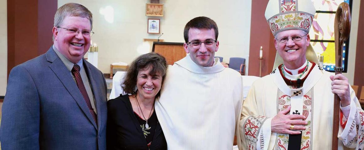 Kevin later knelt before his archbishop, who laid hands on his head, prayed over him and ushered him into the sacrament of holy orders as a transitional deacon.