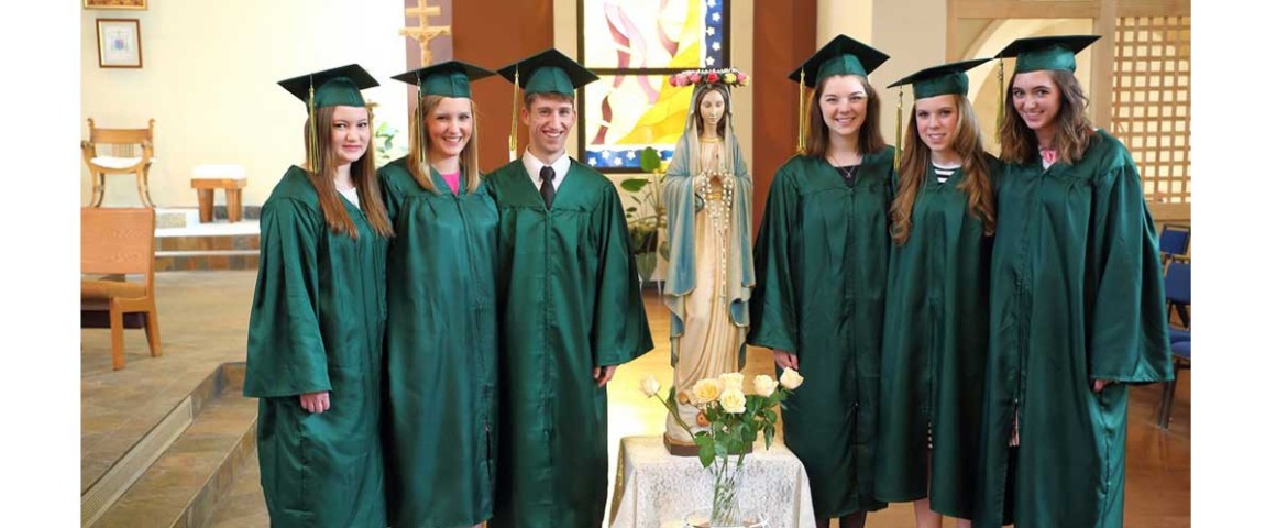 Holy Rosary Academy in Anchorage graduated six seniors this year. The k-12th grade school held its baccalaureate Mass at Holy Family Cathedral on May 19. Dominican priests from the downtown cathedral presided at the Mass and the choir consisted of the school’s faculty.