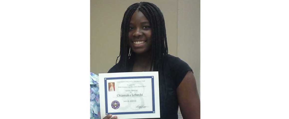 During the award ceremony last month at Holy Rosary Academy a $500 award was given to Chiamaka Lebechi whose essay explored what virtues and qualities are needed during high school to be a blessing to others. Lebechi is a parishioner at St. Elizabeth Ann Seton Church and attends Lumen Christi High School where she will be in 9th grade next fall.