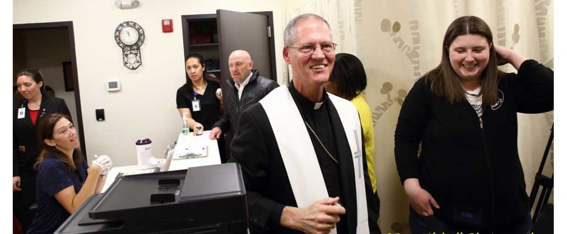“I cannot help but think that by the Gospel and certainly by the life of the Lord himself that this facility does exactly what he did,” Archbishop Etienne said as he blessed the Brother Francis Shelter at the event. “Jesus touched and healed people — he listened to them.”