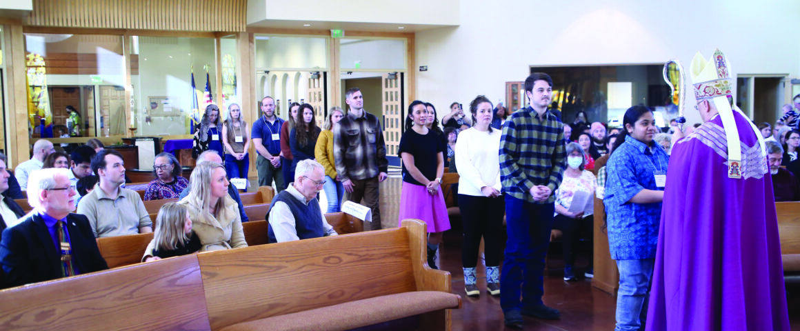 Approximately 200 people gathered for the Rite of Election at the Cathedral of Our Lady of Guadalupe in Anchorage on March 6, the first Sunday of Lent, according to Deacon David Van Tuyl. The archbishop presided over the service that brought people together from 10 Anchorage parishes.